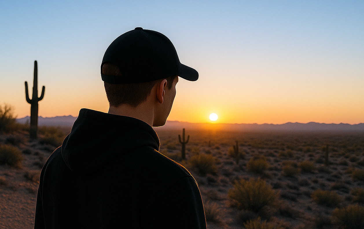 From the high desert edge, this panoramic shot looks out over Arizona's...